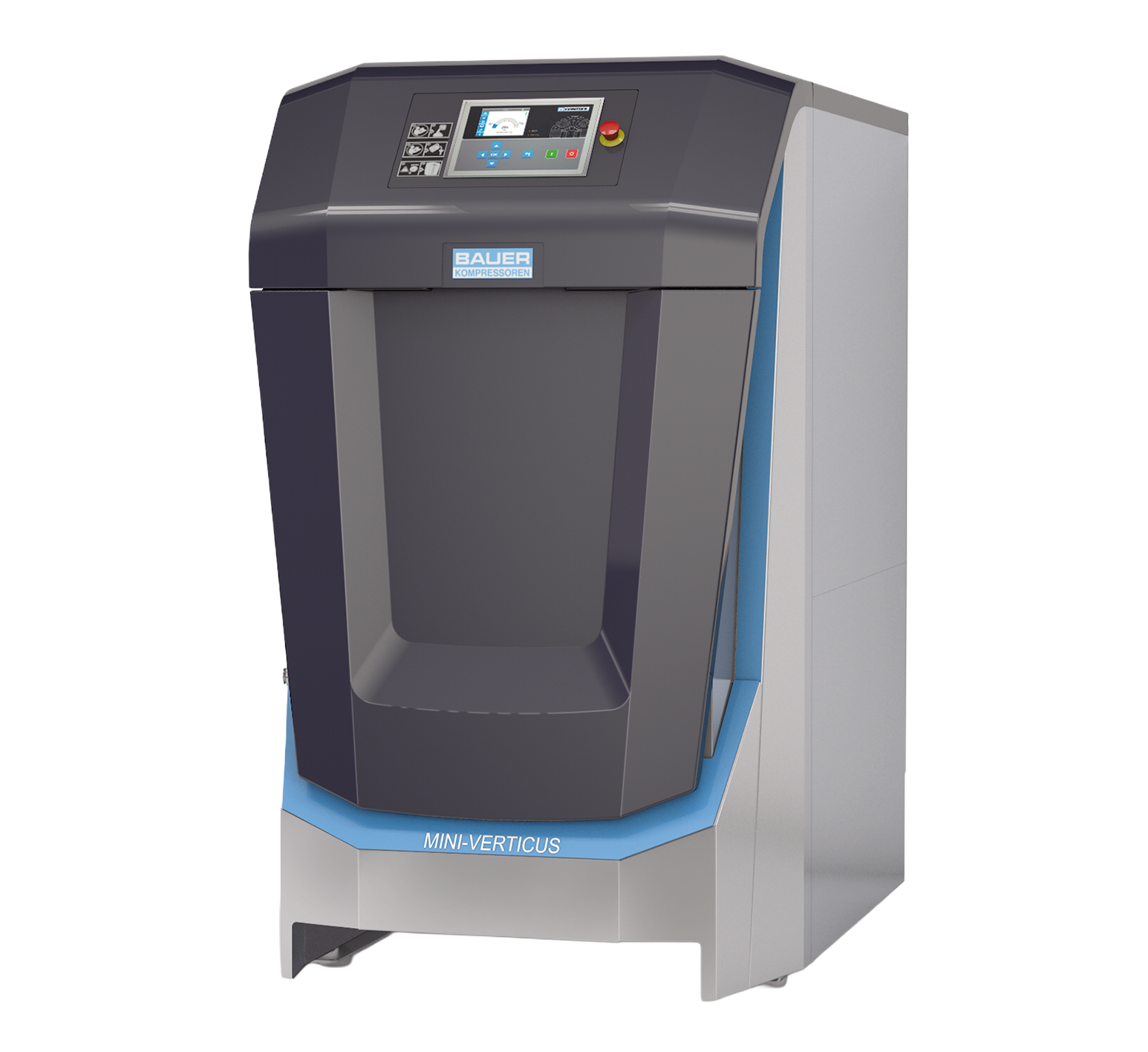 Bauer Mini Verticus MV320 Compressor. The new MINI-VERTICUS combines the legendary BAUER compressor blocks with improved components and ultra-modern design! During the redesign, the focus was on ergonomics, making operation as easy as possible, reducing noise and boosting efficiency. MINI-VERTICUS is now available with a higher charging rate of 320 l/min and with an open design as standard.
