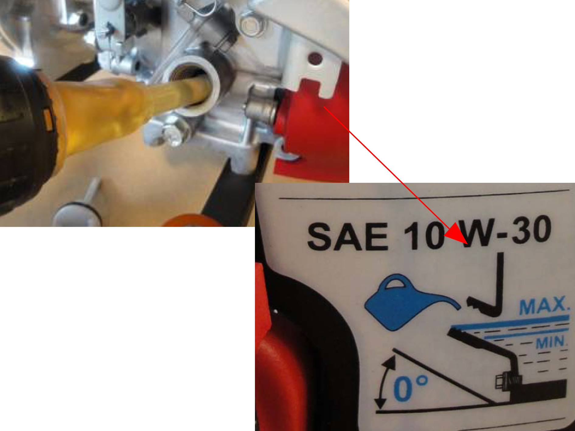 • Make sure that the pump is in horizontal position when checking the engine oil level.