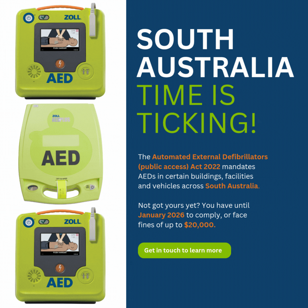 Every second count in a sudden cardiac arrest. That is why South Australia is leading the way to mandate Automated External Defibrillators (AEDs) to be installed in public and private spaces by 1st January 2026.
