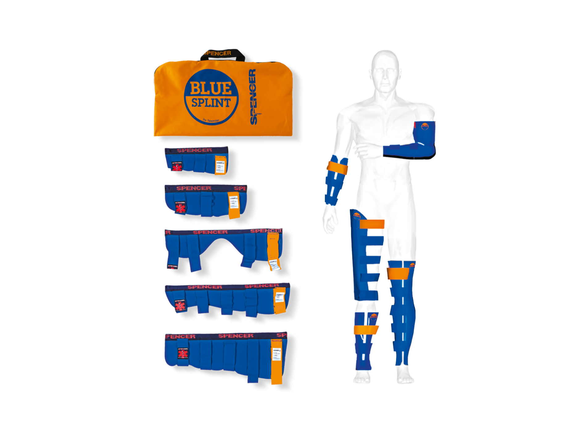 The Spencer Blue Splints Kit is a must-have immobilization set designed to help rescue workers to effectively stabilize suspected fractures of limbs on patients, reducing pain and risks of additional damage during pre hospital transport operations. It comes with 5 highly-resistant rigid splints and a carry bag.
