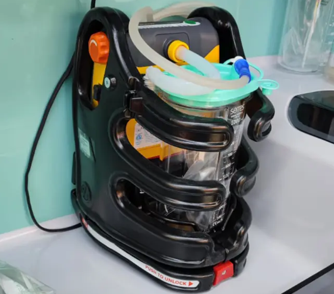 Securely fitted in a 10G or 20G tested wall mount, this battery-powered suction unit can be removed from the wall with the push of a button.
